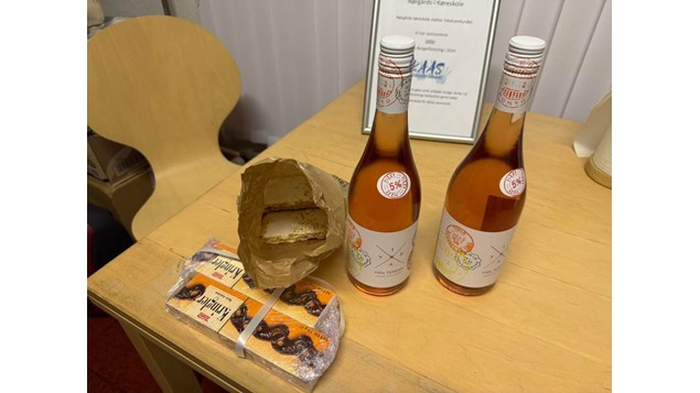 Hejsa alle vil lige vise gaver mig og Benny har fået fra tilfredse elever . Det så flot tusind tak Malene med chokolade og Heidi med vinen og Haldur med de nybagte hindbærsnitter . Det varme os mega meget de bedste hilsner fra os