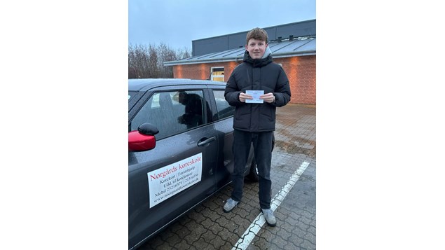 Hej alle efter vintervejret så klare Malthe Bruun sin veloverstået køreprøve . Så flot klaret og har den store fornøjelse at sende endnu et kørekort til Kaas . Stort tillykke herfra . Tusind tak for du valgte os ved Nørgårds køreskole i Kaas