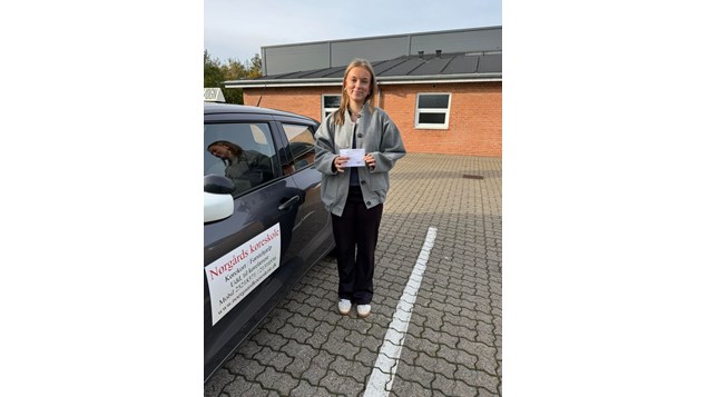 Hej alle så har Mathilde Ulrik Poulsen bestået så flot sin køreprøve . Stort tillykke med kørekortet og mega dejlig vi kan sende endnu et kørekort til Saltum . Tusind tak for du valgte Nørgårds køreskole i kås