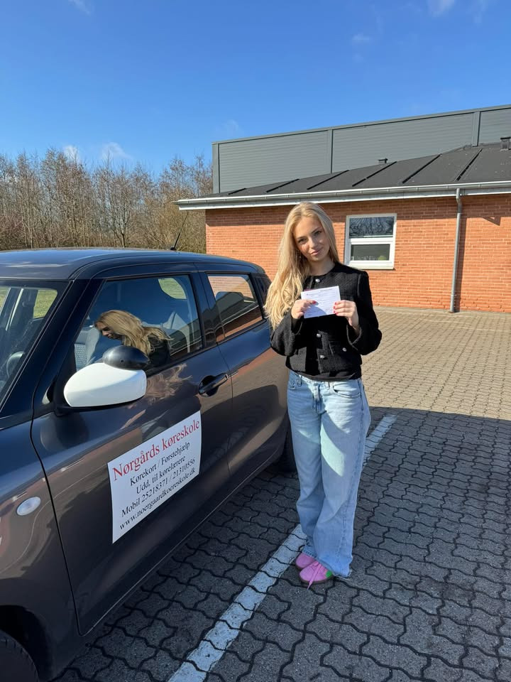 Hej alle så har vi endnu en meget glad elev med kørekort Victoria Sloth . Har bestået sin køreprøve så flot . Vi har endnu den store fornøjelse at sende endnu et kørekort til Pandrup. Stort tillykke herfra . Tusind tak for du valgte os ved Nørgårds køreskole i Kaas