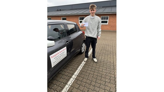 Hej alle så har vi endnu en meget glad elev med kørekort Lukas Ovesen. Har bestået sin køreprøve så flot . Vi har den store fornøjelse at sende endnu et kørekort til Knøsgaard V. Aabybro . Stort tillykke herfra . Tusind tak for du valgte os ved Nørgårds køreskole i Kaas