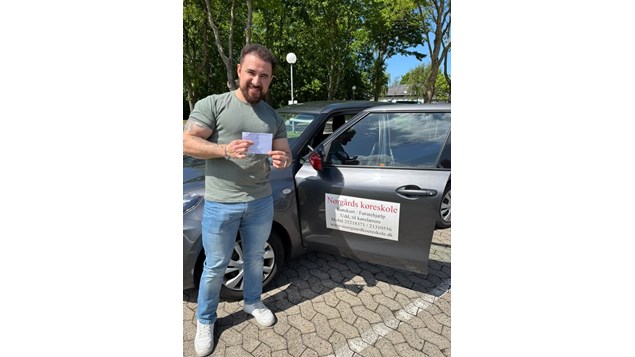 Nørgaards Køreskole fejrer, at deres elev Mujeet Nejaat har bestået sin køreprøve og modtaget kørekort. De sender et stort tillykke og takker for valget af deres køreskole.